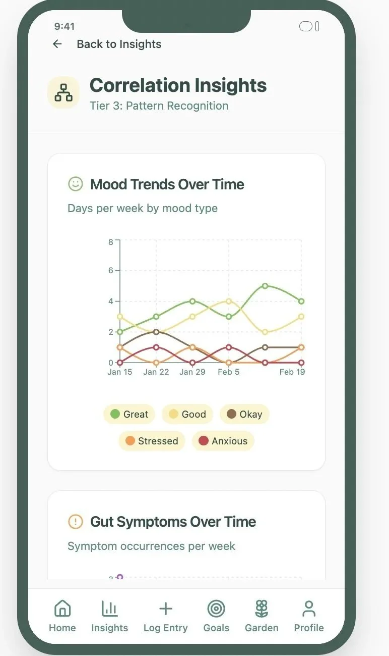 generate a health report PDF to share with their doctor, allowing users to inform their gut-mind insights in the app with those of real clinical professionals.